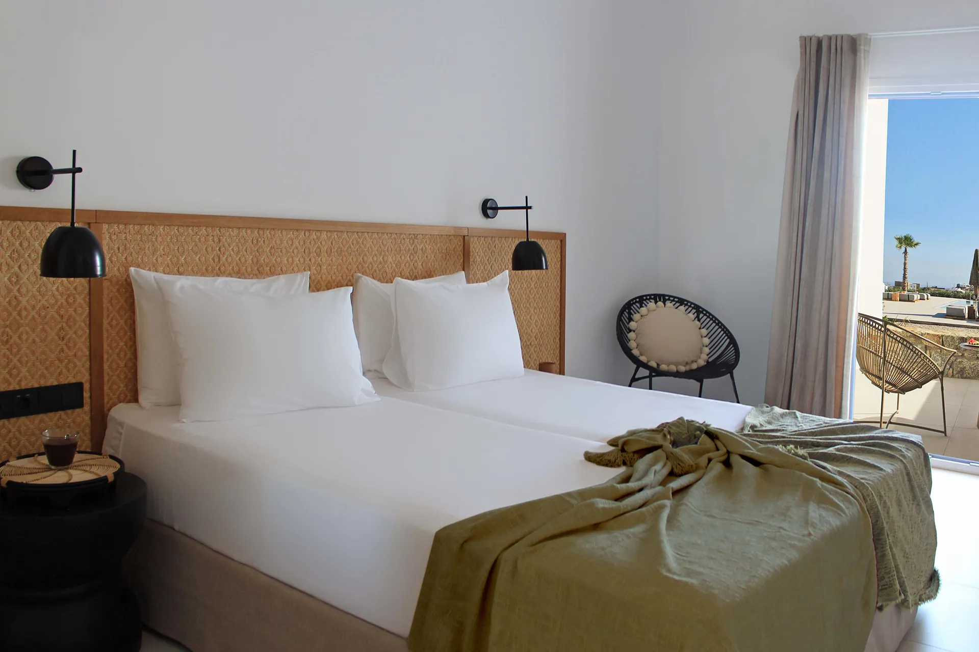 Your 24 square meters overlook our infinity pool, placing you at the heart of the hotel’s social energy—yet your spacious private balcony maintains perfect tranquility. Watch the water change colors throughout the day. Feel the energy of fellow travelers enjoying their Greek island escape. Return to your peaceful haven whenever you choose.